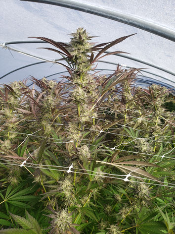We use locally made compost and grow in full sun. Living mulch planted in our beds attracts beneficial insects, balances soil moisture and feeds soil microbes. Once the plants start flowering and filling out, we cover them to avoid losing trichomes to soaking rains. After harvesting & curing, our flower is hand trimmed, extracted in ice water for traditional hash and pressed into rosin. In an energy intensive industry, we strive to limit our energy use, inputs & streamline our process for greater efficiency.